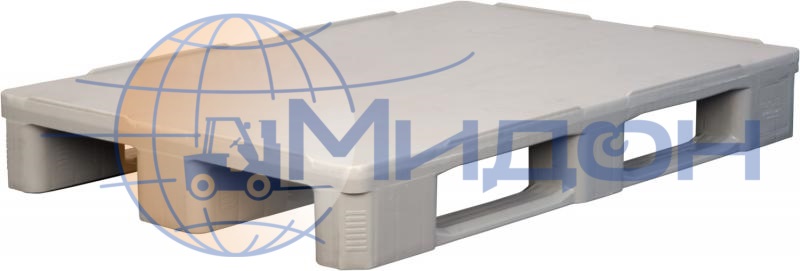 Паллет пластиковый сплошной на 3х полозьях (7500кг/1750кг/1750кг), гигиенический, усилен металлическим профилем IR 1208-3R-G-H 1200 х 800 х 160 цвет - серый