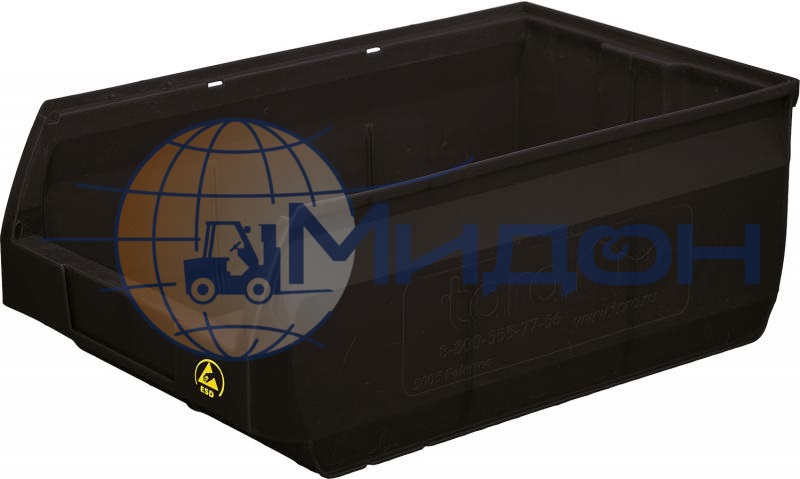 Лоток пластиковый для склада ITALIA Palermo 5005 ESD, черный антистатичный, сплошной 500 х 310 х 200