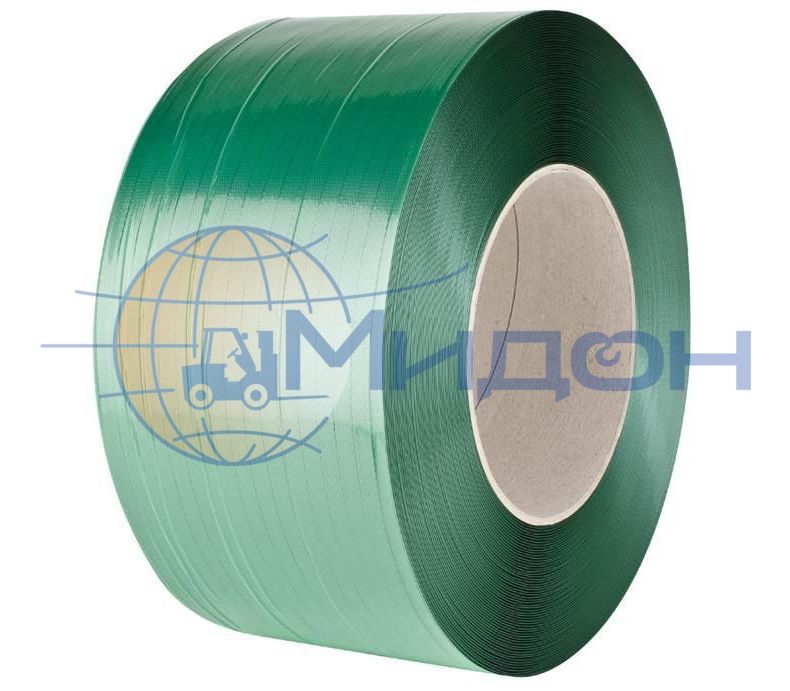 Лента полиэтилентерефталатная с тиснением (ПЭТ) 12х0,6мм (зелёная) разрывная нагрузка 240 кгс(Н), 1 бухта 2450 м (полуавтомат, ручная)