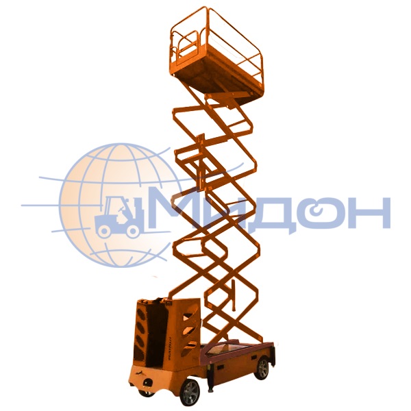 Подъемник ножничный передвижной самоходный 500-9 DC (0.5-9) 500кг 9м (от АКБ, ЗУ-220В), с кабиной оператора