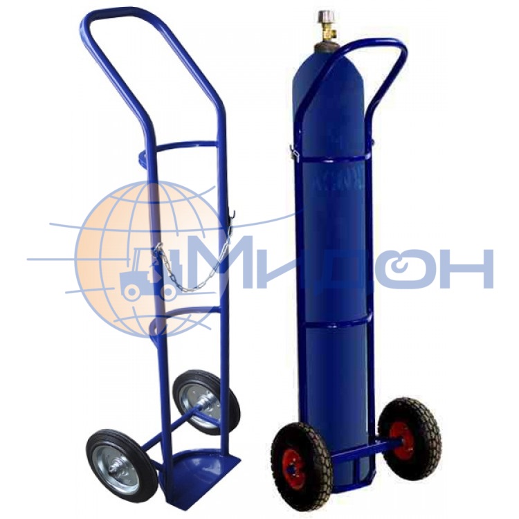 Тележка двухколёсная ГБ 1 (110кг) для 1го баллона кислорода, ацетилена, углекислоты (колёса ф250: надувные, Китай)